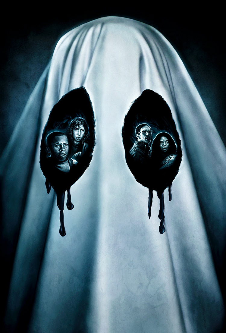 Promo art for MonkeyBox comic book by David Dean (2012) / Movie poster artwork for Boo! by Luke Jaden (2018) /